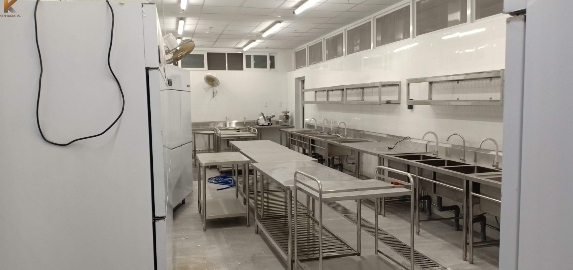 Tại đây sử dụng các loại bàn inox cao cấp nhiều tầng, kệ inox, tủ đông, tủ mát công nghiệp …