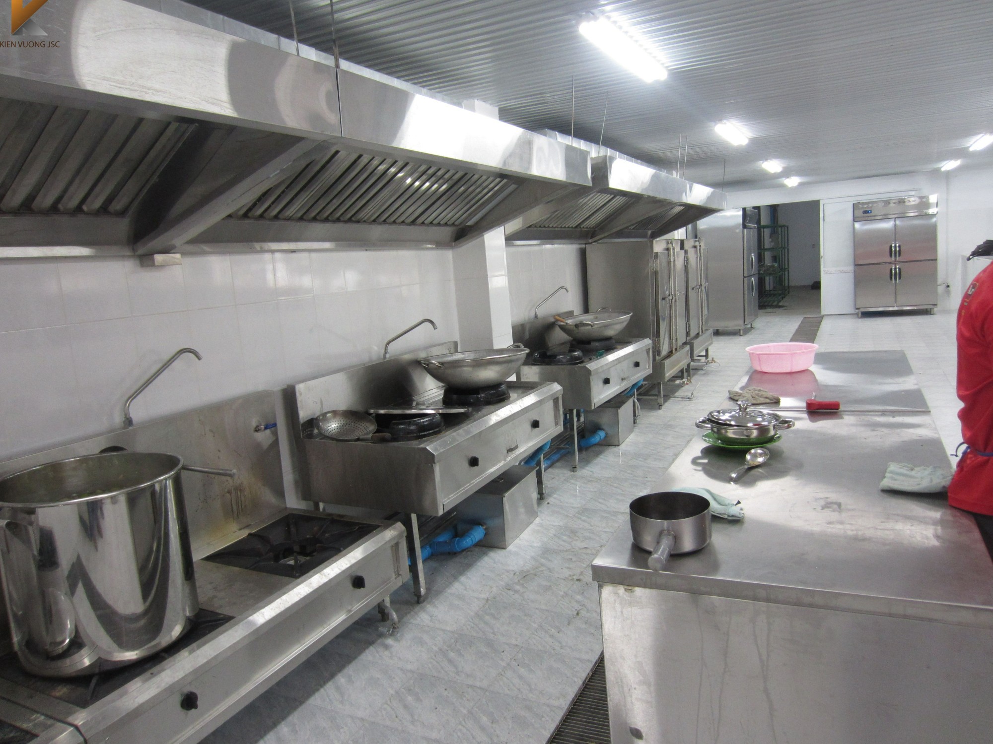 Khu bếp nấu được bố trí diện tích rộng và thoáng, dễ dàng thao tác, tránh ảnh hưởng đến chất lượng món ăn. Sử dụng các thiết bị đồ dùng bằng inox cao cấp để vệ sinh dễ dàng và đảm bảo an toàn trong chế biến. Ngoài ra, khu vực này cũng cần được trang bị máy hút mùi chuyên dụng. Tuyệt đối không để khói làm ảnh hưởng nhà bếp hay bàn ăn của khách..