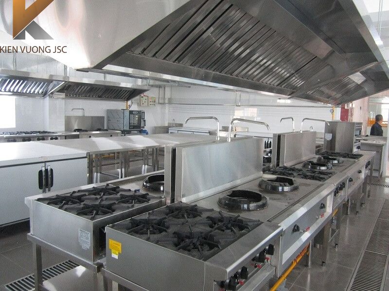 Hệ thống hút khói công nghiệp và hệ thống cấp gió tươi được lắp đặt giúp cho không gian bếp luôn được thông thoáng, đảm bảo vệ sinh an toàn thực phẩm cao nhất