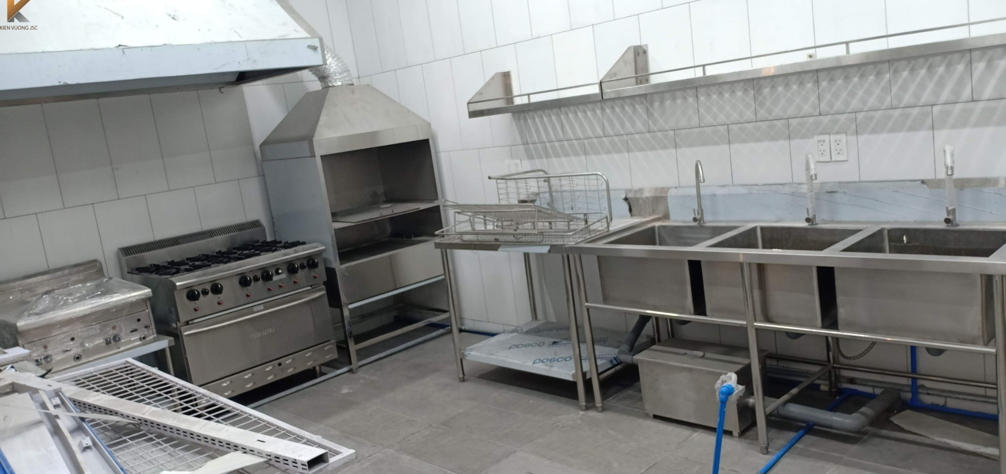 Toàn bộ mặt bằng khu bếp chính được đội ngũ kỹ thuật Inox Kiến Vương tư vấn thiết kế và cung cấp hoàn thiện theo tiến độ dự án và phục vụ đúng công suất cần sử dụng của các đầu bếp tại đây.